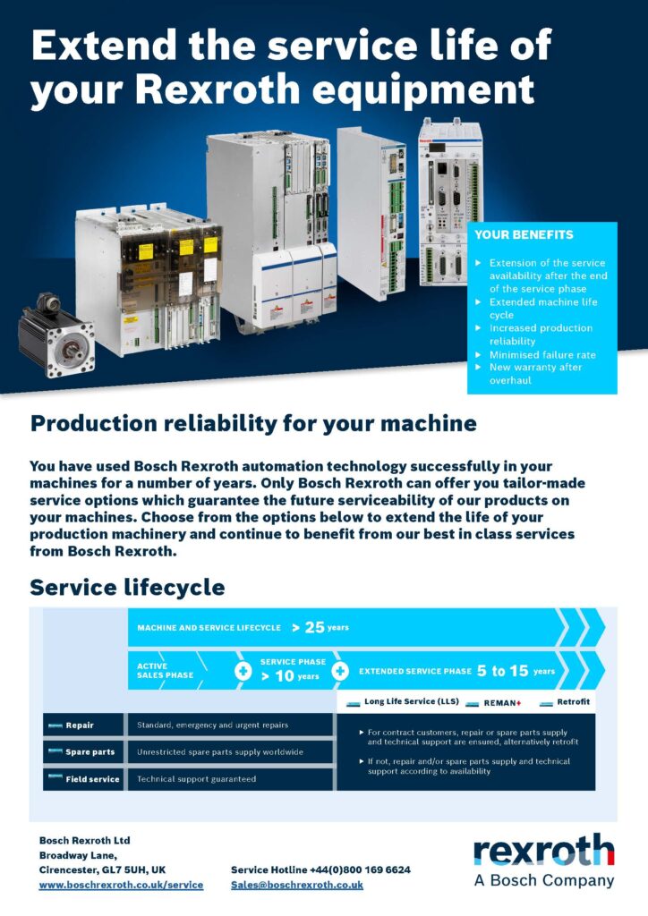 Reduce costs, downtime and risks and extend the production reliability of your machines by availing of one of Bosch Rexroth’s tailor-made service options: